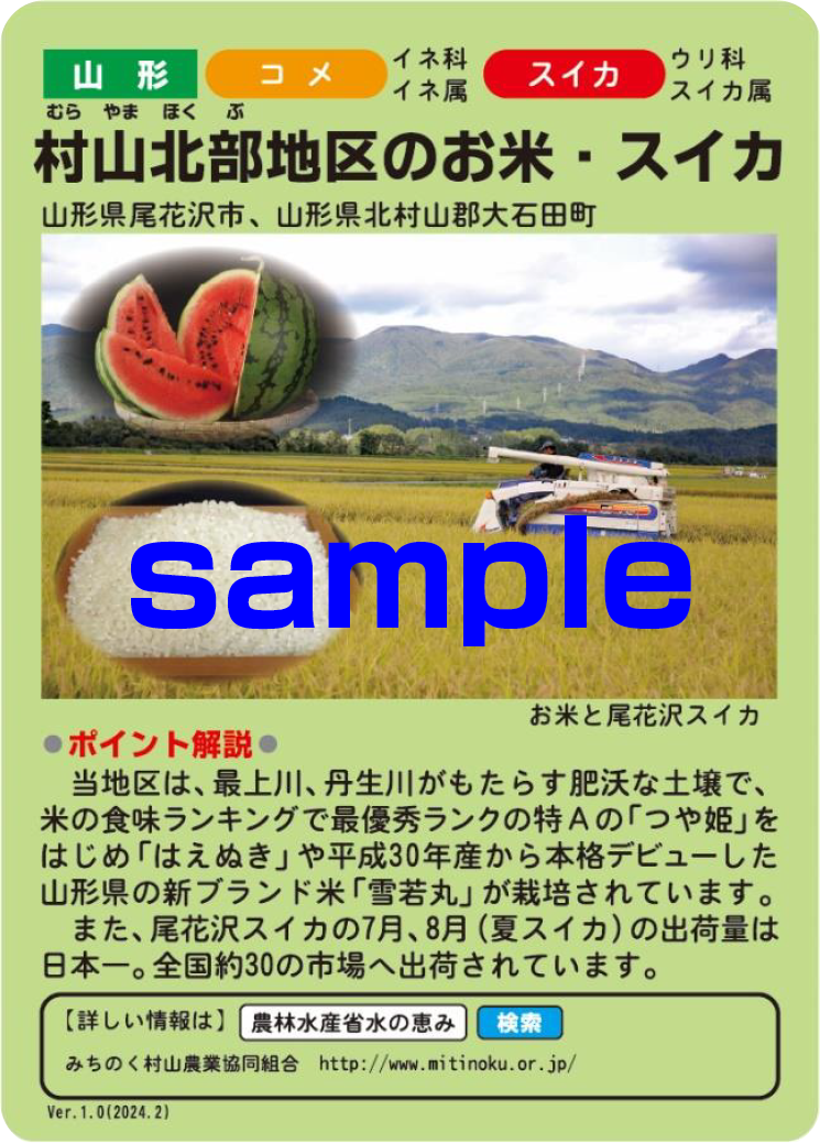 「村山北部地区のお米・スイカ」(水の恵みカード提供元:農林水産省)