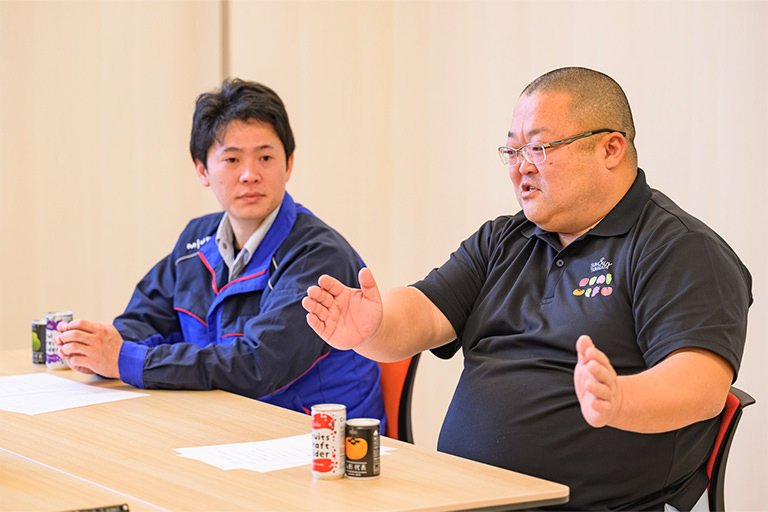 主に、ジュースを殺菌し、ペットボトルや缶に充填する工程で使用しています。具体的にいうと、工場に集められた果物を搾汁し、果汁をドラム缶に詰める際の温水殺菌工程や、ペットボトルや缶製品は95~130℃程度の温度が必要なので、こちらも温水殺菌工程をするために三浦工業さんのボイラを使用しています。