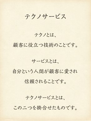 これからの時代、世の中からはモノよりもサービスにニーズが集まると考え、三浦保は「テクノサービス」の理念を精力的に説き続けたのでした。