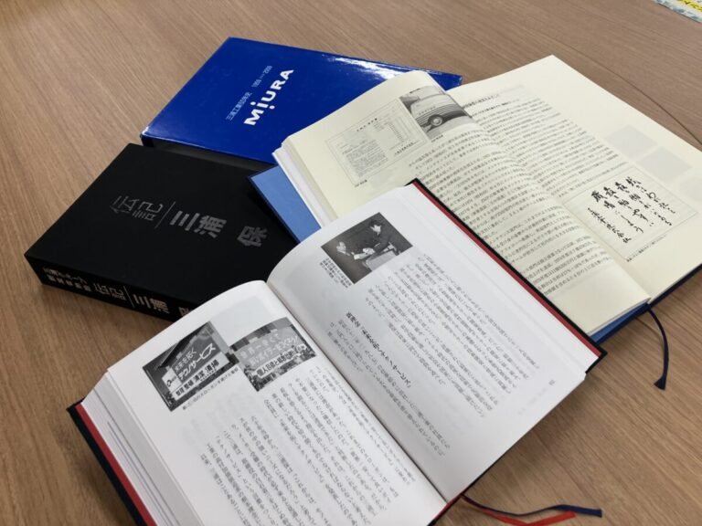 参考書籍:『三浦グループ創業者物語 伝記 三浦保』(手前)、『三浦工業50年史』(奥)より転載。記載事項、写真を抜粋。