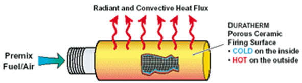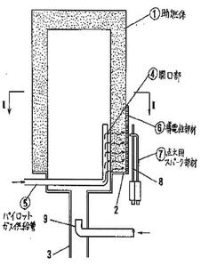 - 大型予混合表面燃焼バーナ:燃料と空気を事前に混合(予混合)し、その予混合ガスをバーナエレメントとよばれる大型表面バーナで燃焼させる。