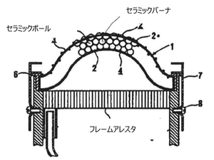 アルゼータのバーナに衝撃を受けた経営陣の指示を受けて、技術部では表面燃焼ガスバーナの開発を始めました。金網の周囲にセラミックフェルトを巻いてセラミックファイバーバーナを自作してみましたが、混合ガスの噴出速度と燃焼速度のバランスが崩れて逆火したり、金網が焼損したりしてうまくいきませんでした。