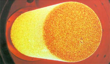そんなある日、𠮷成さんが部長室にある鉢植えを見て「砂を使ってバーナがつくれないかな?」とおっしゃいました。セラミックファイバーの代わりとなるエレメント材料として砂を使ってはどうかということです。私はすぐに堀江海岸まで走るように指示されました(笑)。直径1mmほどの砂を厚み30mm程度に成形してバーナエレメントを作り、そこに予混合ガスを送り込んで燃焼試験をしました。