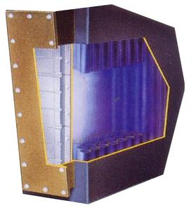 田井君(現・舶用技術統括部所属)が設計・製造リーダを担当し、池田君(現・環境技術部長代理)、中井君(現・舶用エンジニアリング部長代理)が缶体設計を、三浦君、樋口君が実験担当として頑張ってくれた。ノンファーネス®と言いながら、バーナ面と第一列目の缶体にはわずかな空間が設けられている。燃焼反応論がご専門の愛媛大学の日高先生によれば、燃焼反応は10~20μsecで完結するため、これだけの空間で十分であると私は考えている。