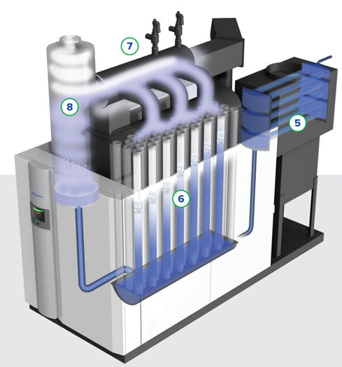 Q:SQはその後、1トン/h、2トン/h、2.5トン/h、3トン/hと容量をアップしていき、通算販売台数が4万台(2022年9月時点)を超える大ヒット商品となりました。米州、アジアにも展開され、ボイラ効率が100%を超えるものや伝熱面積30m2の7トン/hボイラもラインナップされるに至りました。まさに保さんの夢見た「これぞガス焚き!」と言えるボイラになりましたね。