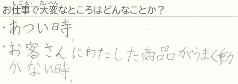 A. あつい時。お客さんにわたした商品がうまく動かない時。