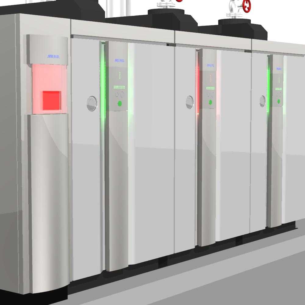 けれども、ボイラ室の中にボイラ以外にも水処理装置だとかいろいろな商品がだんだん増えてきて・・ある時、ボイラ室全体を見るとボイラや水処理装置の世界観がバラバラで寄せ集められた部屋になってしまって、社内からも「うちのは節操がないボイラ室になっている、何とかせんか!」みたいな話になっていました。それからシステム化を考えてデザインを再構築していきました。