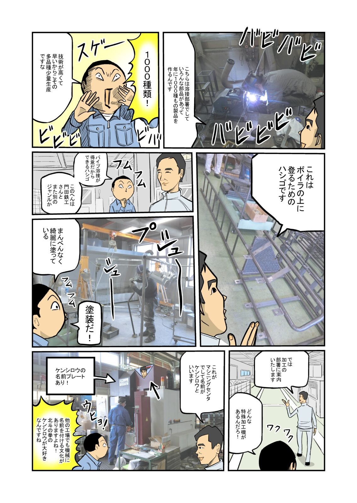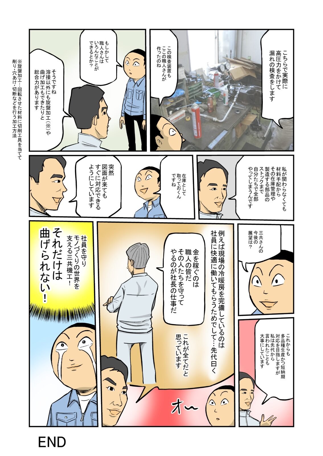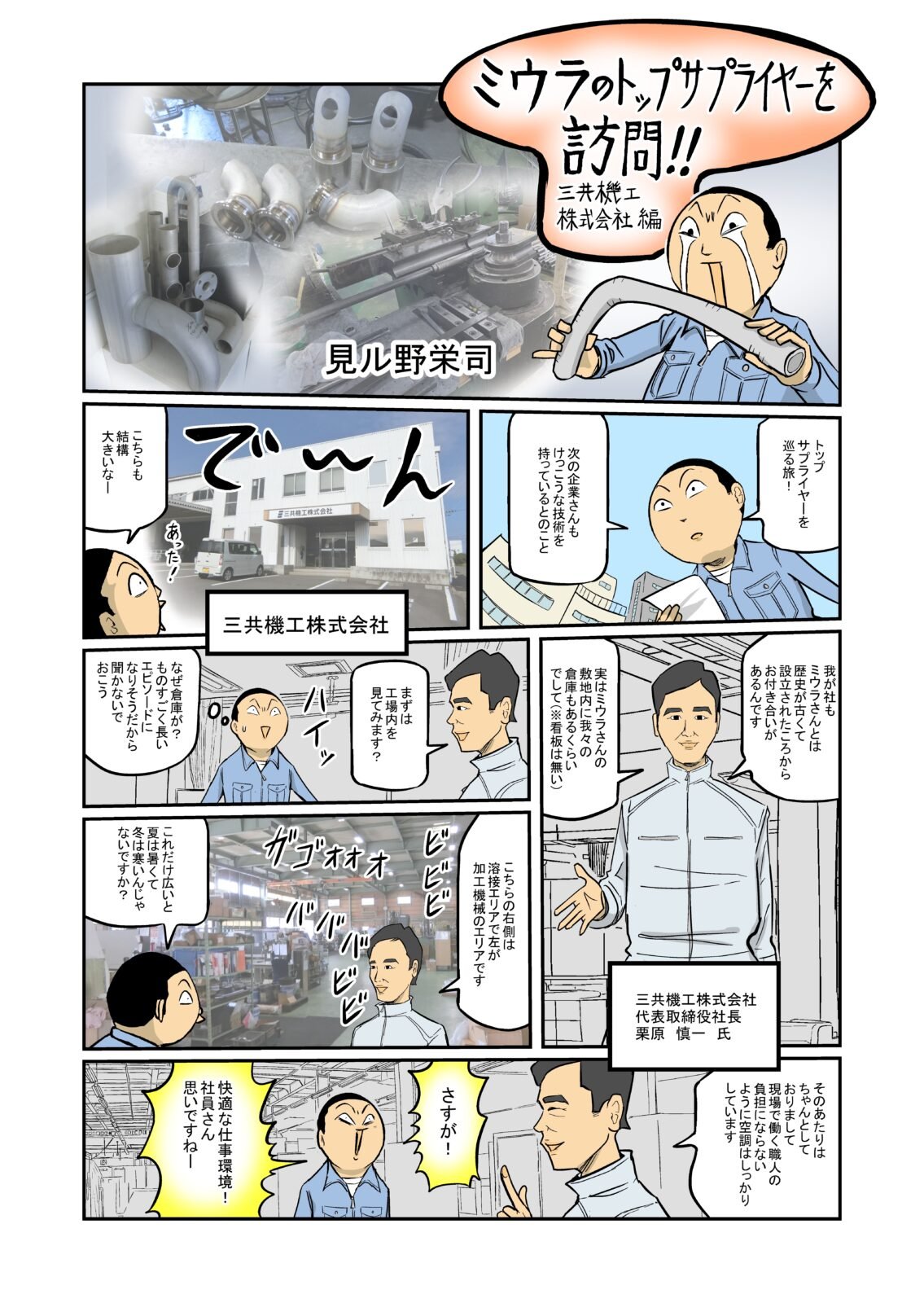 漫画家の見ル野栄司が三共機工を訪問させてもらい、長きにわたる信頼の秘密を拝見させていただきます。