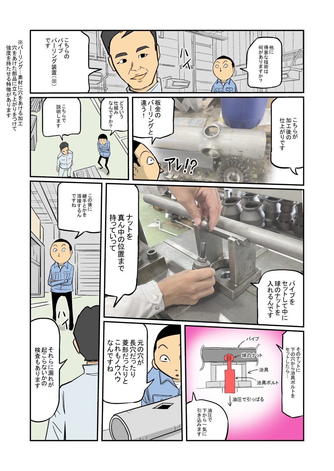 配管のバーリング加工が可能で、これができる協力企業は極めて少ない。