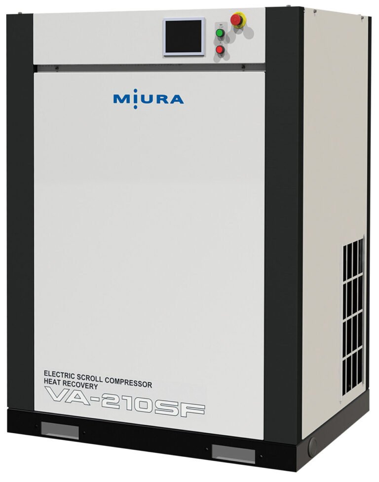 このように、環境にもやさしく、コスト削減も叶う、ミウラの「熱回収式電動エアコンプレッサ VA」。