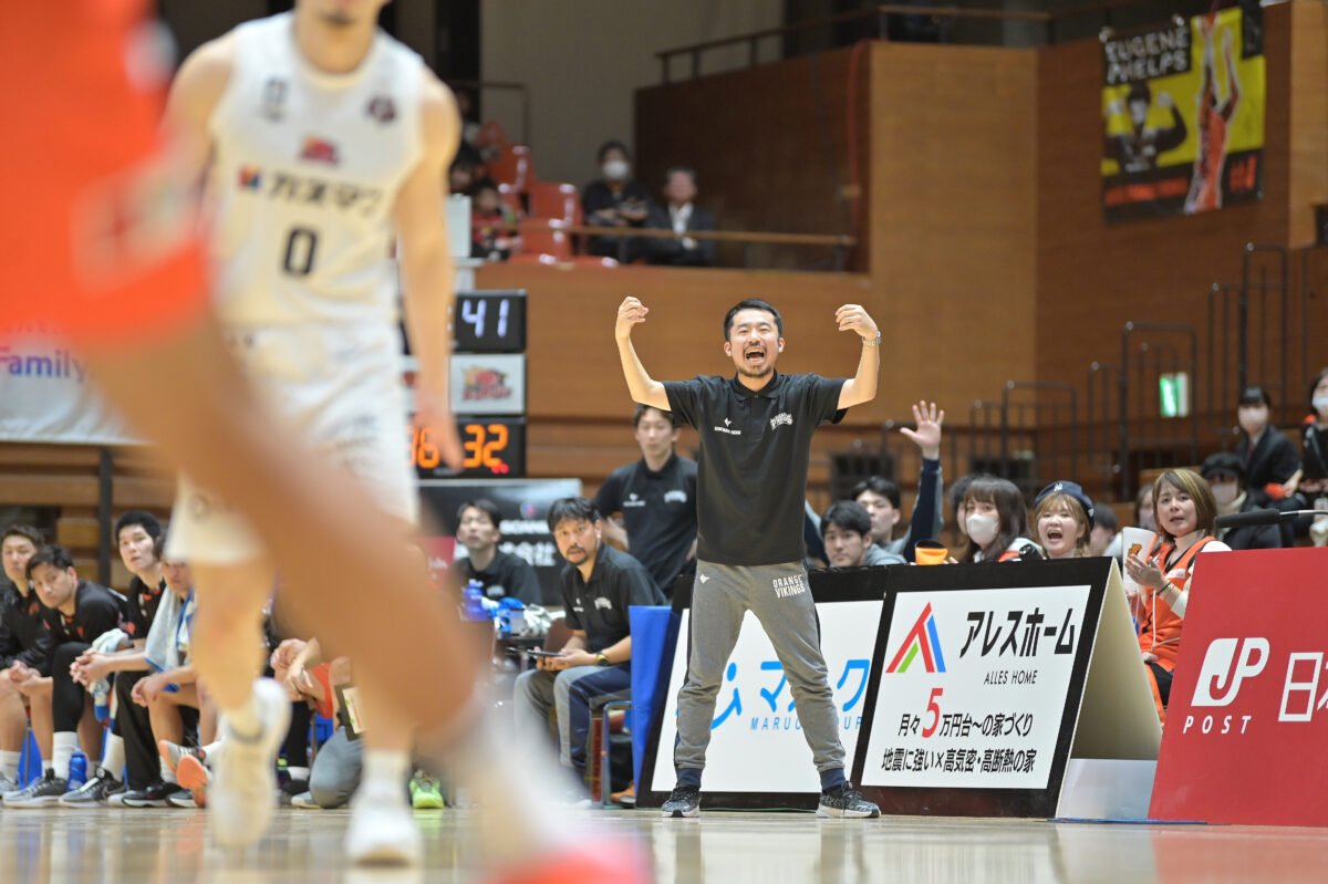 その後はかつての師の言葉を守るように佐賀バルーナーズ、滋賀レイクスで再びアシスタントコーチとして地固め。プロの指導者としてのキャリアを10年積み上げると、ここからが本番とばかりに決めた新天地が愛媛オレンジバイキングスだった。今度はヘッドコーチの大役に加え、GMも兼務するチャレンジを引き受けたのだ。