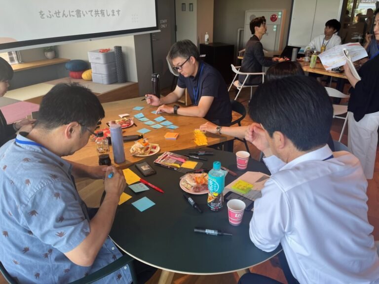 色とりどりのふせんがどんどん貼られていくグループもあれば、他の人の意見をきっかけに思い出したように書き込んでいくグループも……。