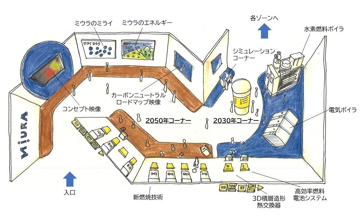 今回のフェアは「ミウラ」と「ミライ」を見に行こう!~未来へのつながり体感フェア~と題し、地球温暖化、人材不足など社会課題に対するミウラの施策を10ゾーンで提案していくことをコンセプトとしています。