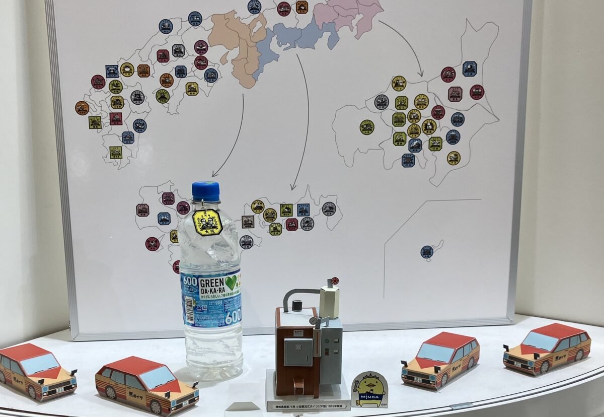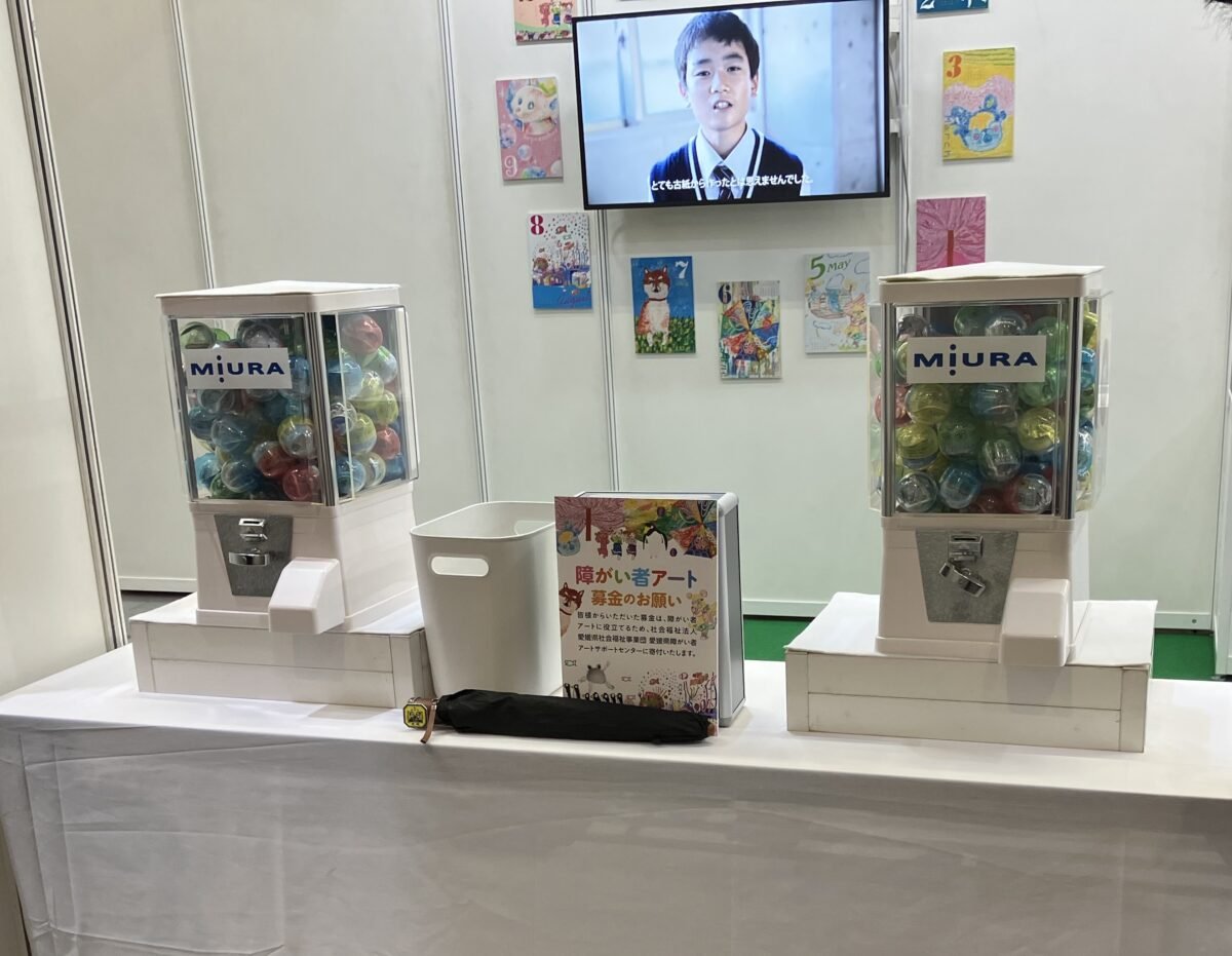 環境活動ゾーンは、ミウラの環境への取り組みを紹介しています。CSR活動として障がい者アートにも力を入れており、その募金のお礼としてカプセルトイが用意されていました。中身は「ミウラの拠点ロゴ入りチャーム」です。お客様に楽しんでもらえるようにとゾーンメンバーが立案したそうです。