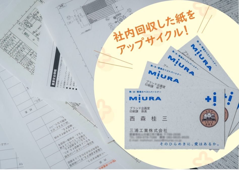この名刺は、ミウラの社内で集められた使用済みコピー用紙から作られているって知っていましたか?
