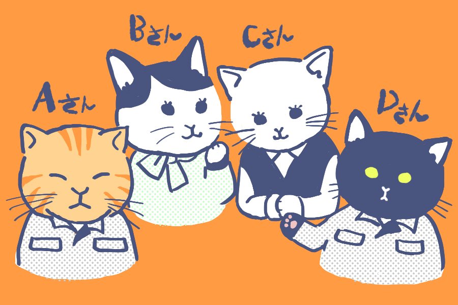 Aさん:40代・男性 / Bさん:30代・女性 Cさん:20代・女性 / Dさん:20代・男性