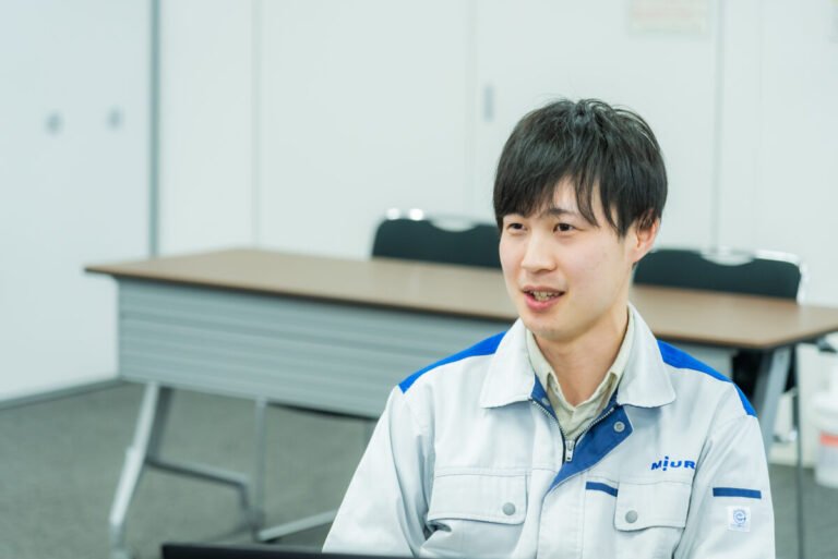 2021年入社。熱利用機器技術部所属。入社後1年間は、熊本支店に勤務。現在は、ヒートポンプの設計・開発を行う。飲み会は、仕事では聞けないプライベートな話が聞けるので好き。ただ、妻との時間も大事にしたいので、頻度は1カ月に1回ぐらいが希望。