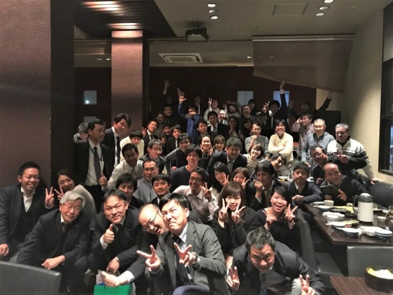 送別会での集合写真。和気あいあい!(コロナ禍前)